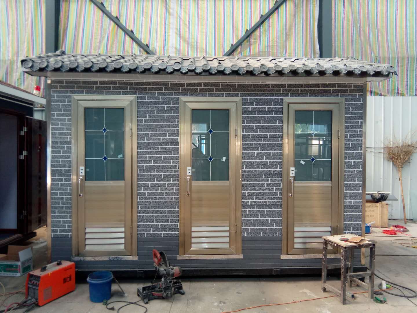 1、房體結構: 采用輕鋼龍骨結構,鋼材全部使用國家標準鍍鋅鋼材。根據(jù)房體的大小特選用國標方管(50-100)焊接而成。鍍鋅管厚度為2.8mm,方管經過除銹后進行鍍鋅、防腐處理。這樣就會延長廁所使用壽命。